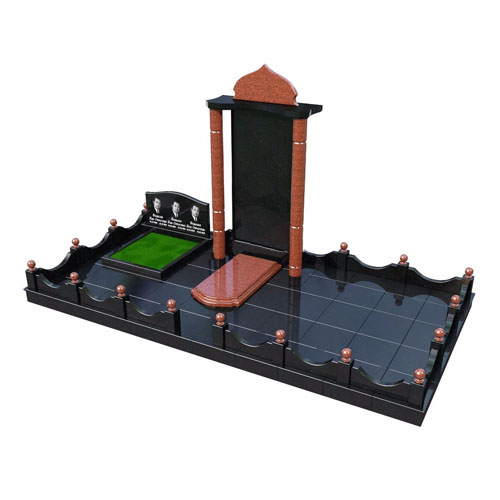 Комплекс памятников для семейного захоронения на 4 могилы. Черный габбро и красный лезниковский гранит.